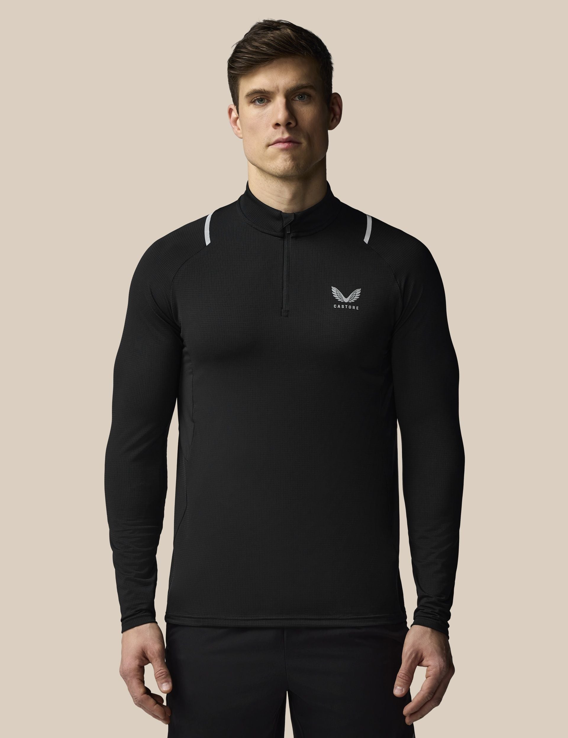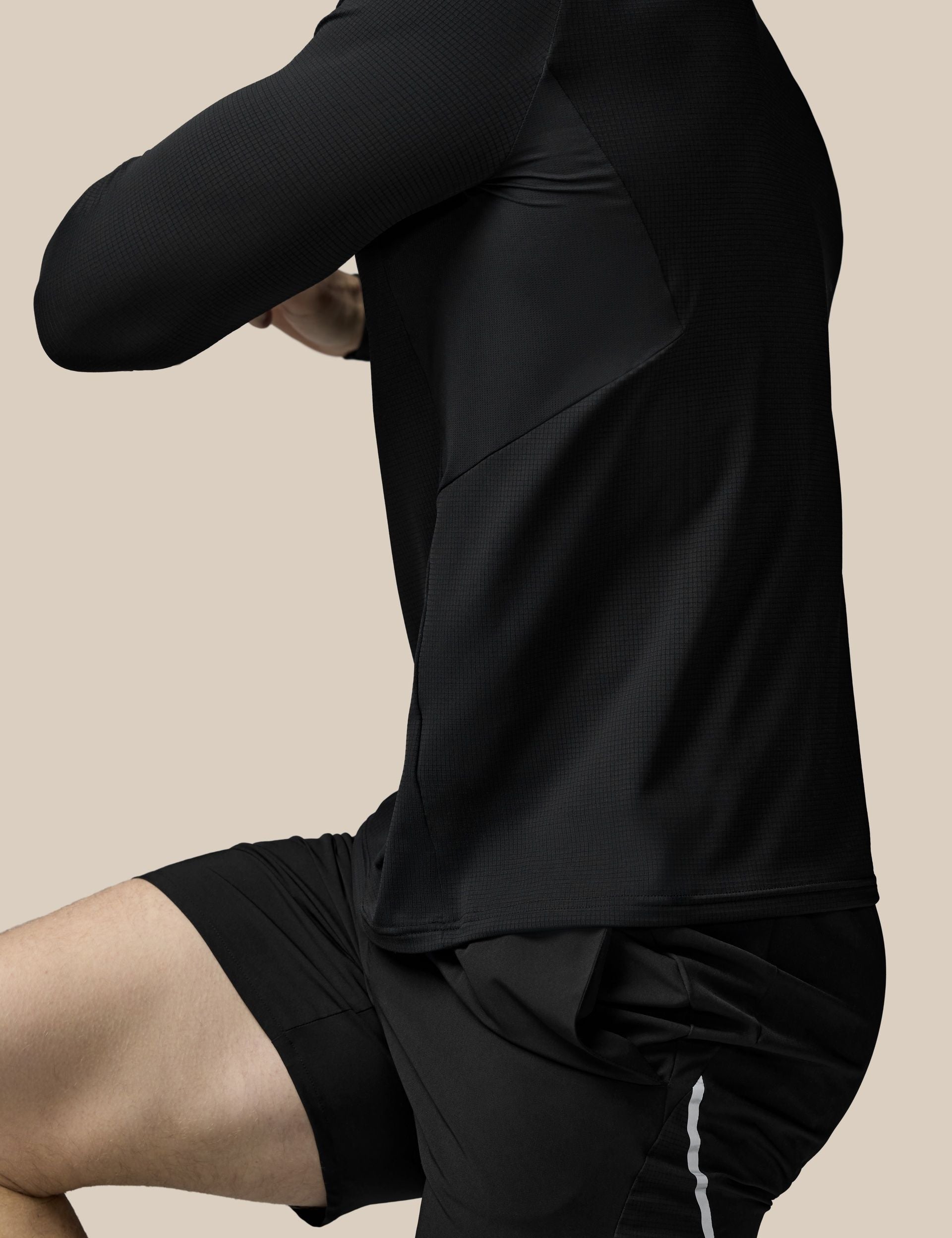 The Apex Training 1/4 Zip Top in Black is a streamlined layer for gym sessions and road runs. Lightweight stretch fabric and an athletic profile deliver fuss-free layering. Built to handle warm-ups, tempo sessions and cool-weather miles with a clean, technical look.