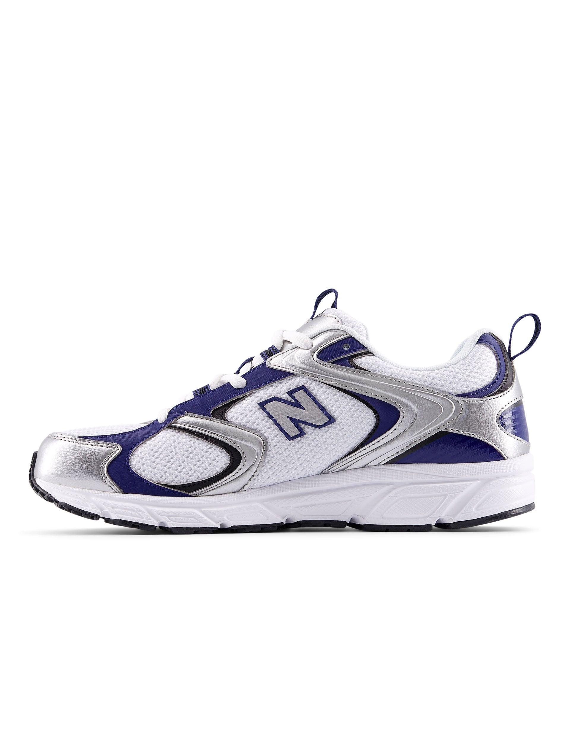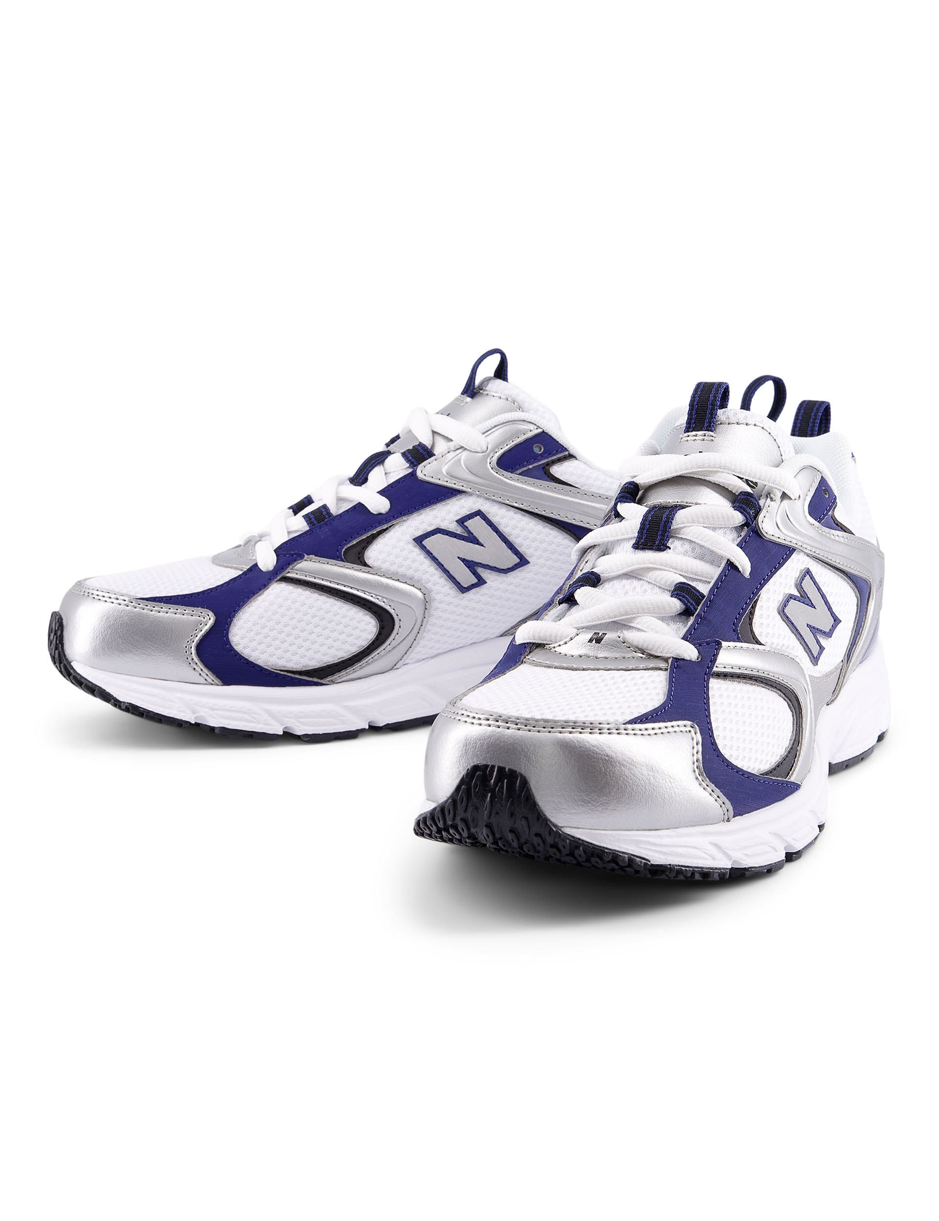 The 408 Shoes in White/Silver Metallic/Blue Oyster deliver a fresh take on 2000s-inspired running style. Perfect for all-day wear, these sneakers feature a synthetic and mesh upper for breathable comfort. Step out with ease and finesse in this cool, retro silhouette.