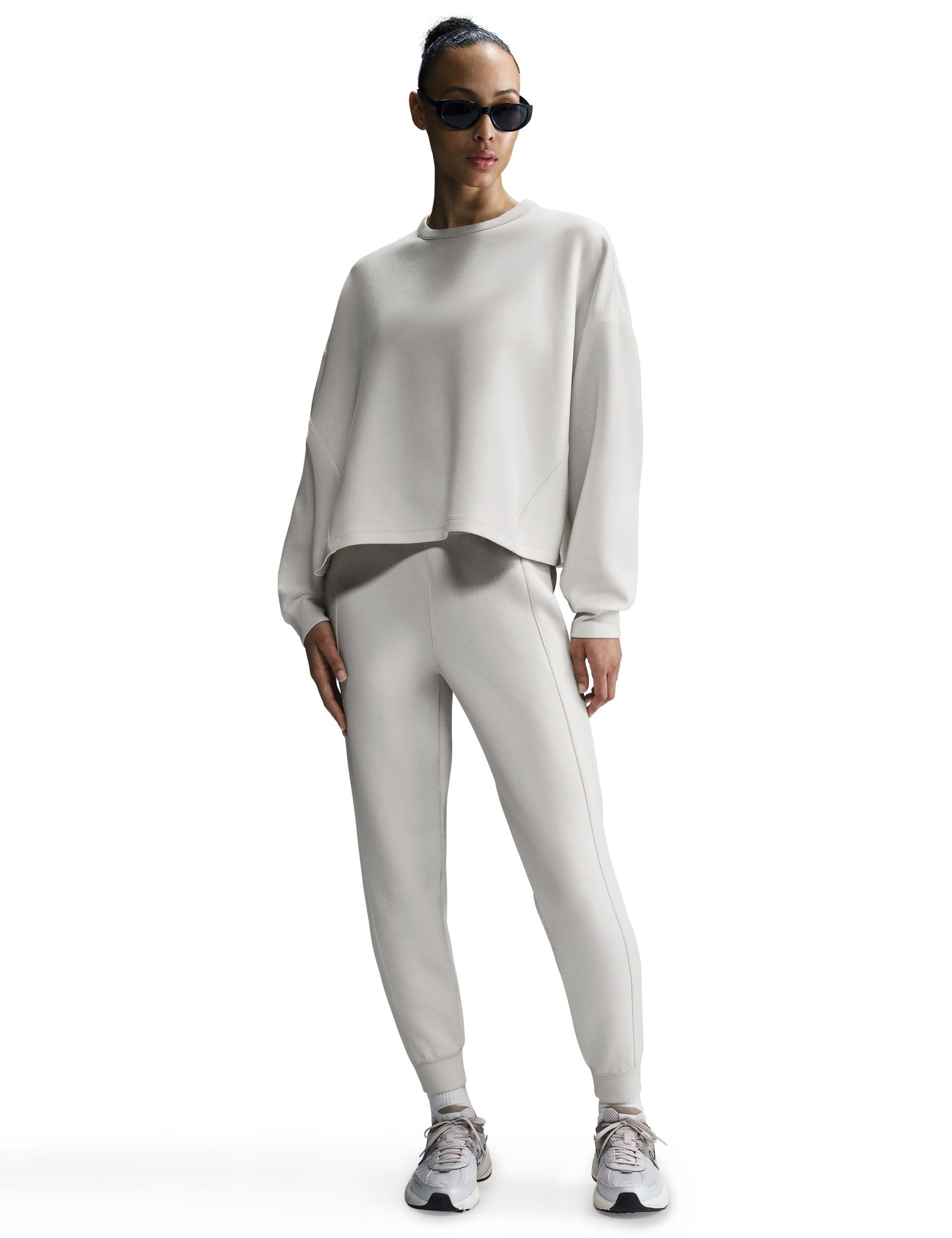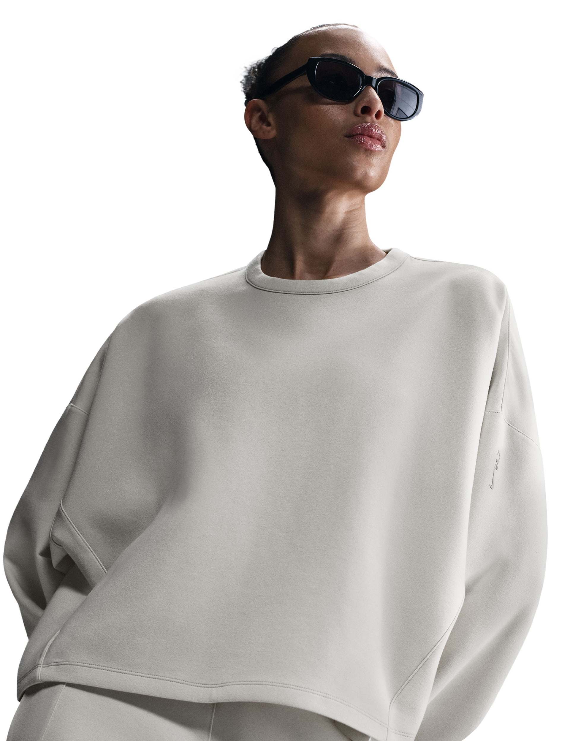 The 24.7 ImpossiblySoft Dri-FIT Oversized Crew-Neck Top in Light Orewood Brown/Light Iron Ore wraps you in extraordinarily soft, smooth comfort built for all-day movement. Sweat-wicking Dri-FIT technology helps keep you dry and comfortable, while the roomy oversized fit delivers laid-back ease. Finished with a classic crew neck and a relaxed drape for effortless wear from warmups to wind-downs.