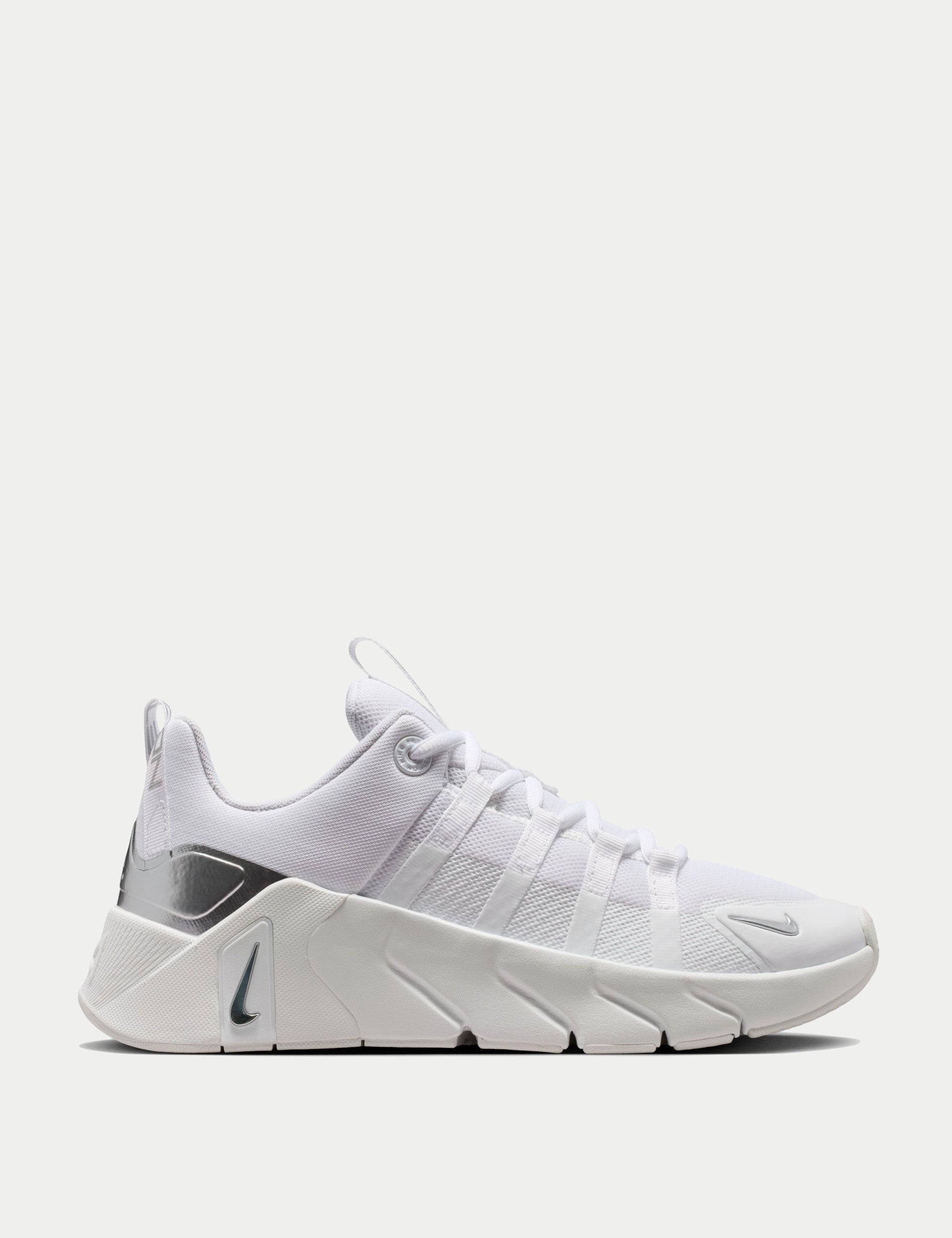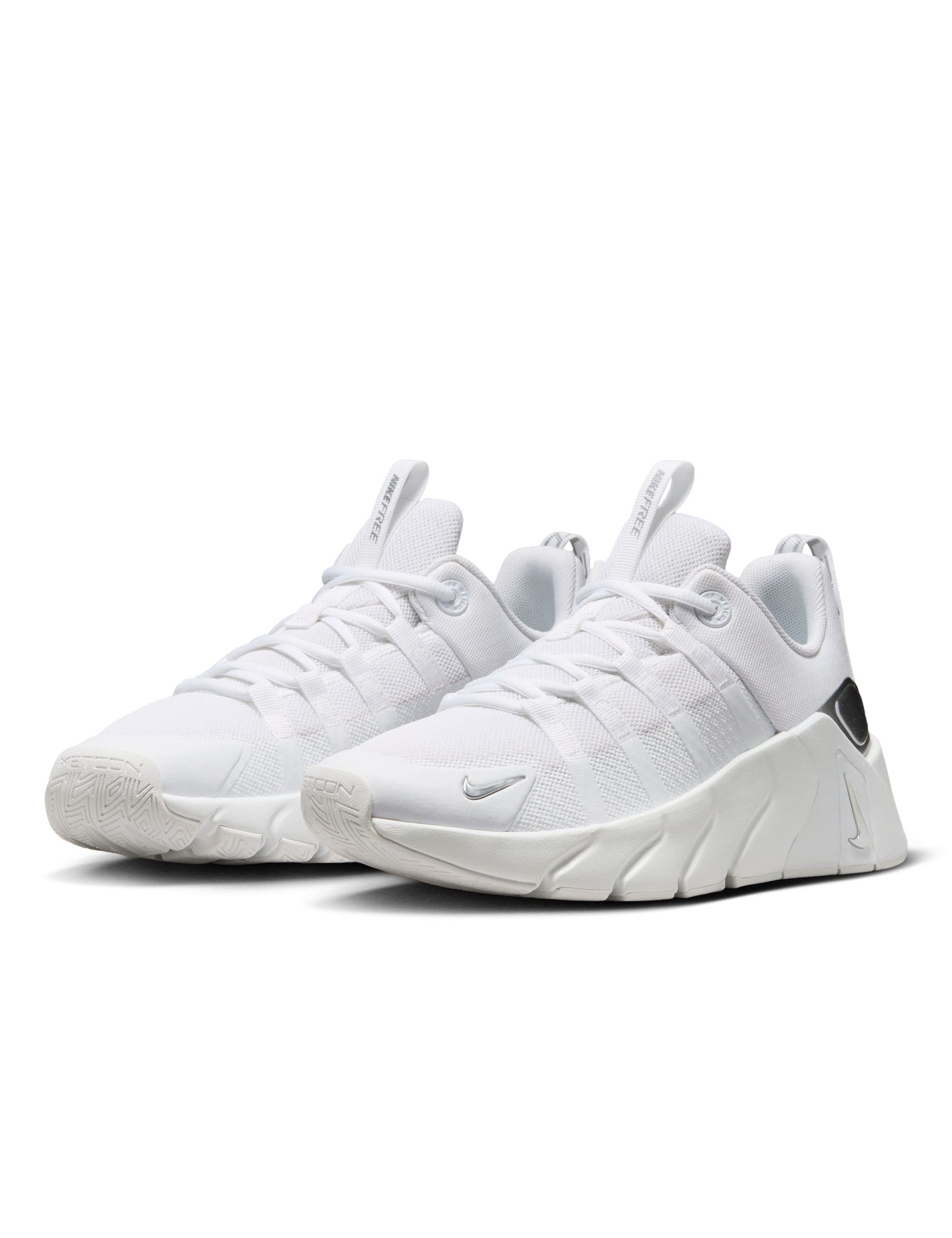 The Free Metcon 7 Training Shoes in White/Metallic Silver are built for versatility in the gym. A flexible forefoot pairs with a stable heel to help you explode through agility work and stay grounded for heavy sets. Designed for all-session comfort with a durable build, they power HIIT, circuits and everyday training.