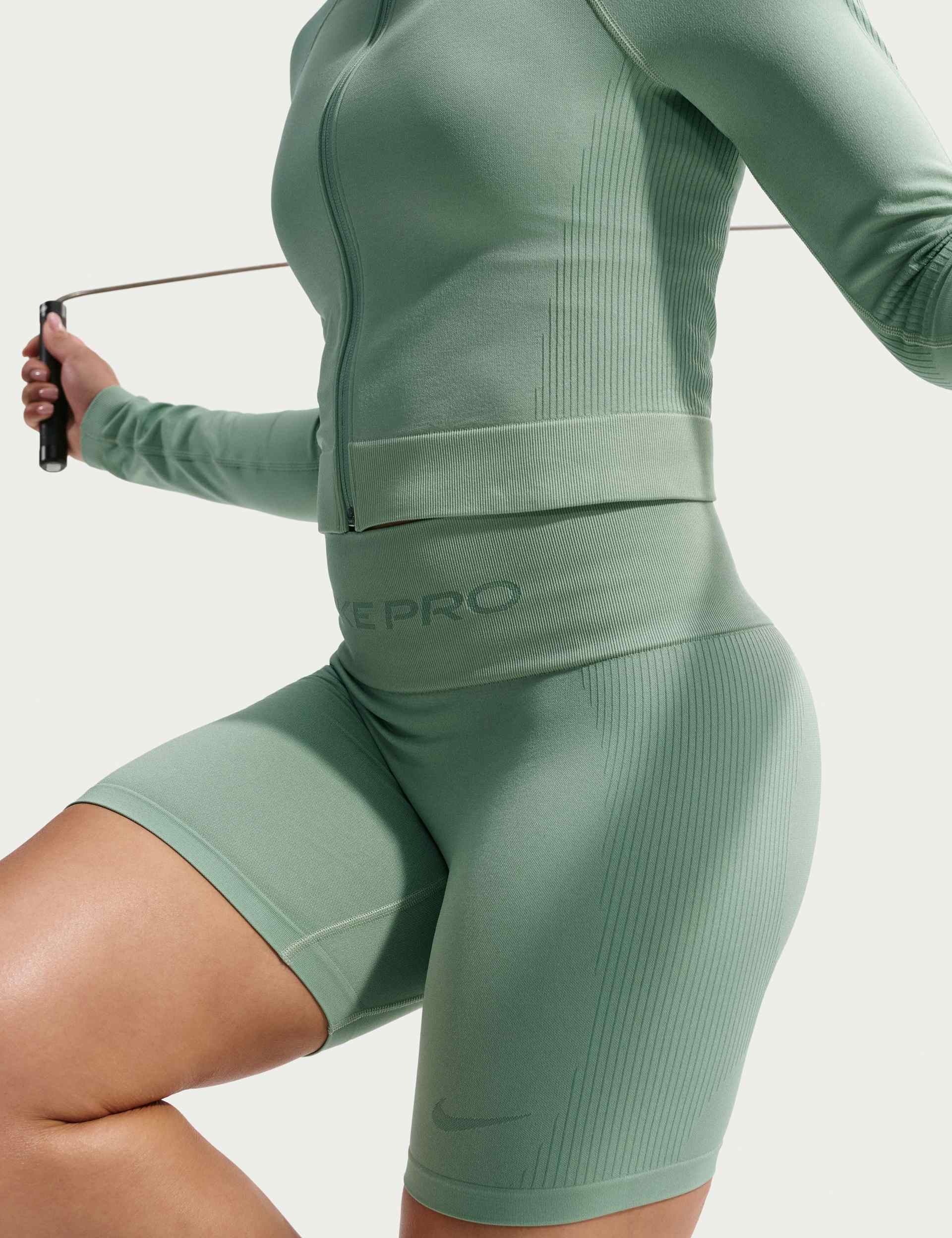 The Pro Seamless Dri-FIT 5" Biker Shorts in Steam deliver a sleek, distraction-free feel for high-intensity training. A smooth, lightweight knit creates a second-skin fit that moves with you, while the seamless silhouette flatters and stays comfortable from warm-up to finisher.