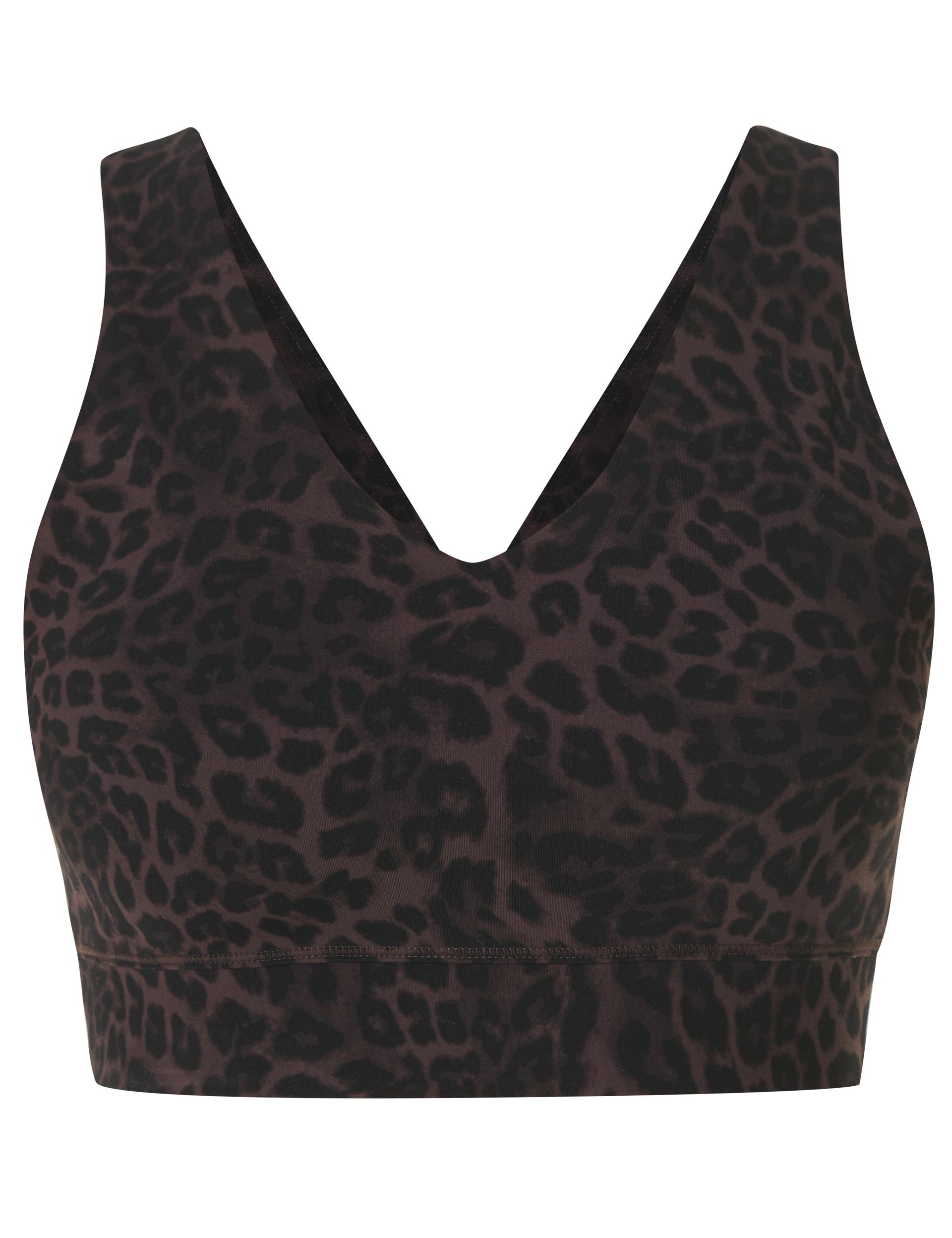 Introducing the incredibly soft and streamlined Ultimate Studio Voop Bra in Brown Leopard Skin Print, a new performance bra perfect for yoga, Pilates, and barre. Its fabric offers gentle compression and a supple, second-skin softness that feels like nothing else, complete with a V-neck scoop neckline and a smooth underband for a sleek, pared-back design.